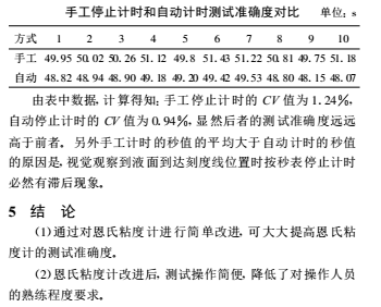 恩氏粘度計采用人工卡秒表的方式計時, 這樣就存在人為的操作誤差。 另外, 操作人員需用肉眼監(jiān)視量瓶中流入漿液的液面是否到達(dá)刻度線位置, 以停止秒表計時 , 這也勢必存在著視覺誤差。 操作誤差和視覺誤差必然導(dǎo)致其測試準(zhǔn)確度低。為盡量減小這些誤差, 操作人員需經(jīng)過長期訓(xùn)練, 而且**好能長期固定檢驗人員, 不同檢驗人員測得的數(shù)據(jù)的可比性較差。3 提高恩氏粘度計測試準(zhǔn)確度的措施