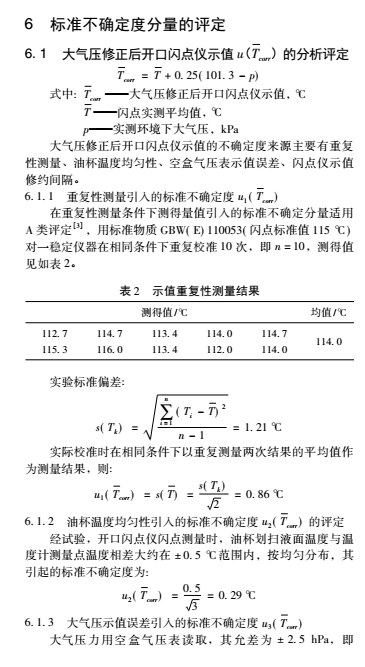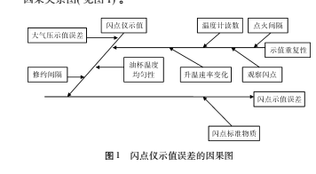 的過程中,大氣壓的示值誤差、油杯溫度均勻性、修約間隔以及重復性測量都會對閃點儀的示值產生影響,其中,升溫速率變化、氣壓變化、溫度計的讀數、觀察閃點、點火間隔都會對示值的重復性產生影響,其中,在實驗過程中,大氣壓變化較小,對測量結果影響可以忽略不計?,F根據各不確定分量繪制因果關系圖( 見圖 1) 。