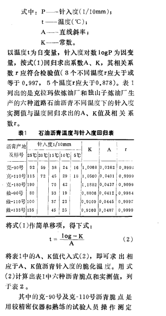 究 ,石油瀝青針入度的對數(shù)與溫度有如下的
