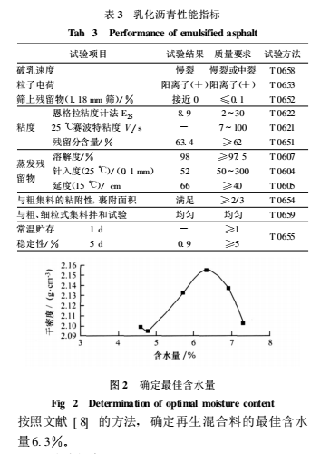 按照文獻(xiàn) [ 8] 的方法 , 確定再生混合料的**佳含水量6.3 %。